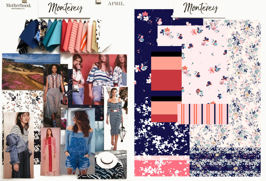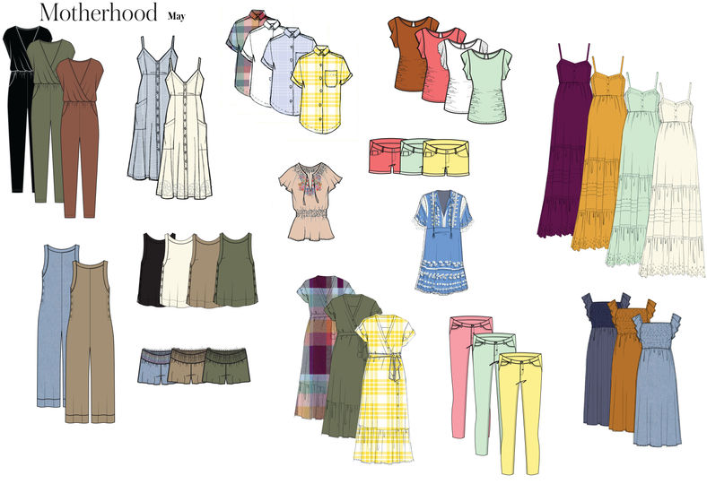 Concept boards, flats and photos of collections from Jessica Simpson Maternity and Motherhood from 2016-2017
